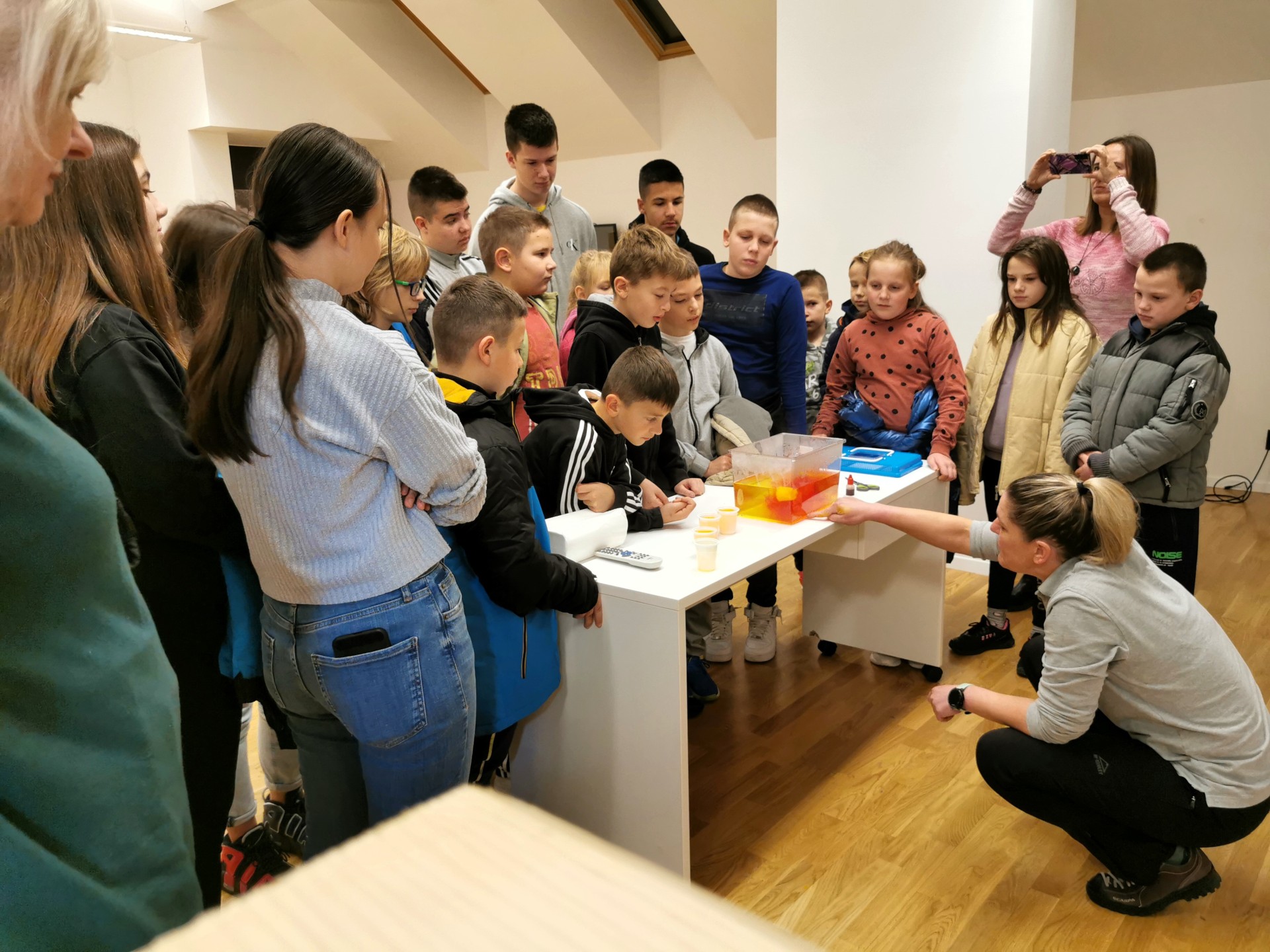 U jutarnjim satima za djecu PŠ Krasno organizirali smo radionicu u Kuća Velebita. Djeca su imala priliku na radionici "Vjetar u boci" saznati kako nastaje bura. Istraživali su i biološku raznolikost Sjevernog Velebita - djeca su pogađala tragove životinja, istraživala kutije iznenađenja, proučavala potkornjake i druge kukce i njihov utjecaj na šumu Sjevernog Velebita.