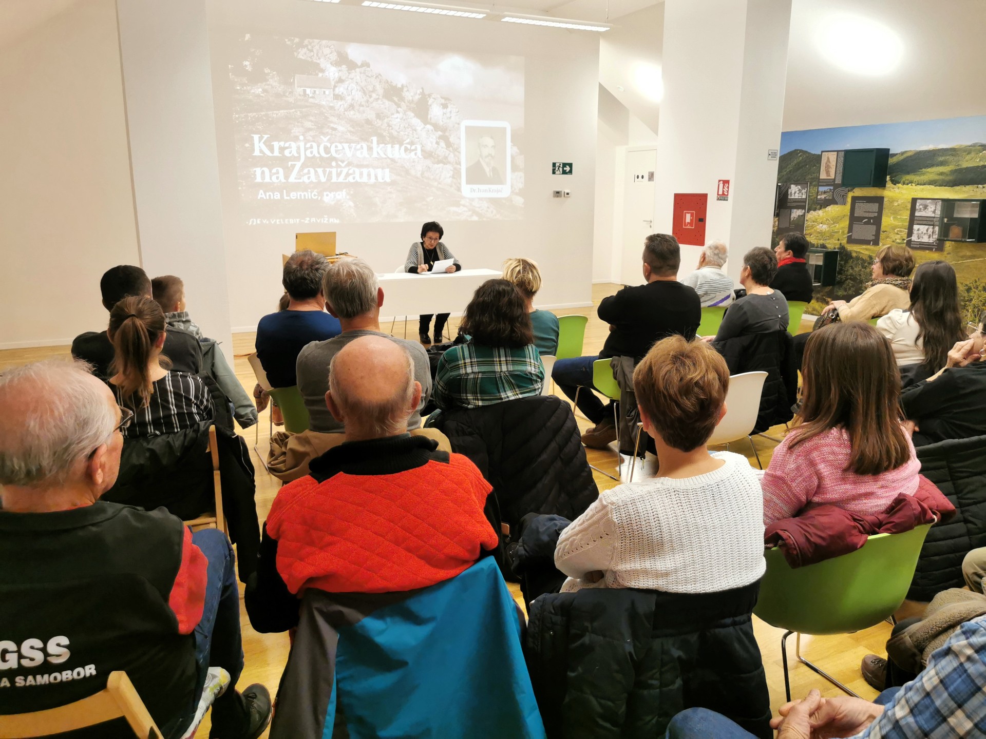 Ana Lemić, prof., predsjednica Ogranka Matice hrvatske u Gospiću održala je zanimljivo izlaganje o Krajačevoj kući na Zavižanu (sadašnjem PD Zavižan), dr. Ivanu Krajaču i njegovim zaslugama za razvoj planinarstva i gradnju planinarskih kuća na Velebitu i u Hrvatskoj.