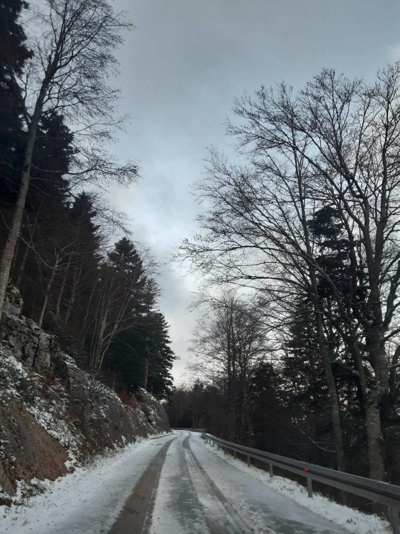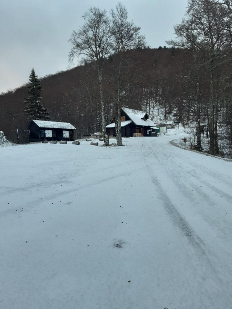 Na cesti prema ulazu u Nacionalni park Babić Siča i Zavižanu ima mnogo leda na cesti te su vrlo niske temperature, a na području Parka puše vrlo jak vjetar.